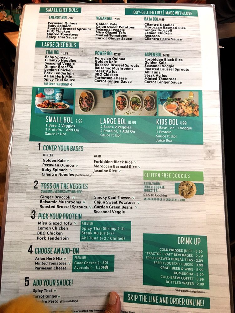 Select 3 from Grains, Greens and Veggies, 1 Protein, up to 3 Toppings and Sauce it Up!